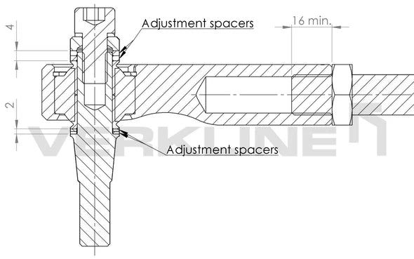 With Verkline tie rod ends it is possible to adjust front bump steer by relocating the ball joint lower or higher with attached adjustment spacers (see picture below). There are 6mm of them combined and You should always use all of them. To replicate OEM geometry put 2 mm of adjustment spacers below the ball joint and 4mm above it. If You want to change Your bump steer simply relocate some of the adjustment spacers from below the ball joint to its top, or the other way around.