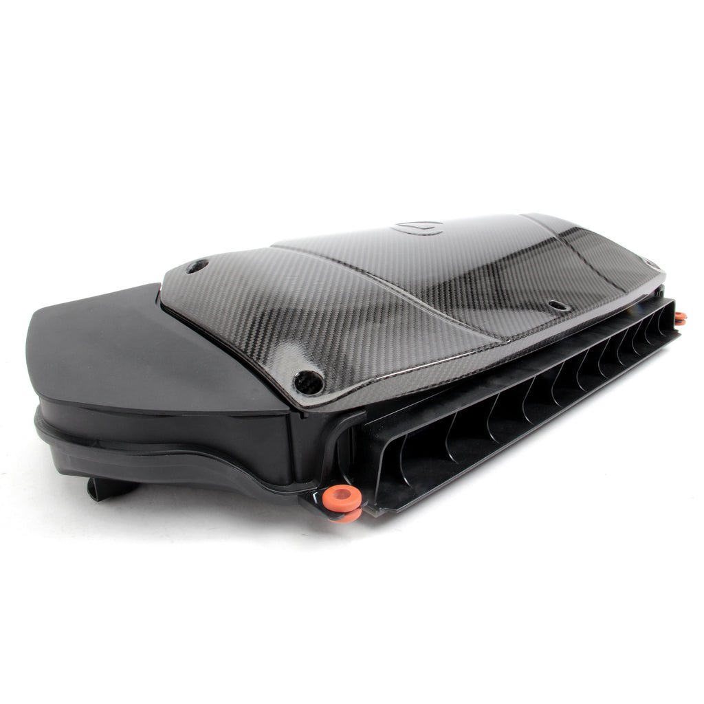 Striking' is the first word that comes to mind when you pop the hood of an F8x X5M/X6M with a Dinan carbon fiber cold air intake system. The underhood appearance is completely changed and set off by intricate carbon detailing that makes the engine compartment just as flattering as the sleek exterior lines the vehicle possesses. While the aesthetics are the most recognizable change to the system what is more impressive is the functionality that lies beneath the carbon fiber lid.