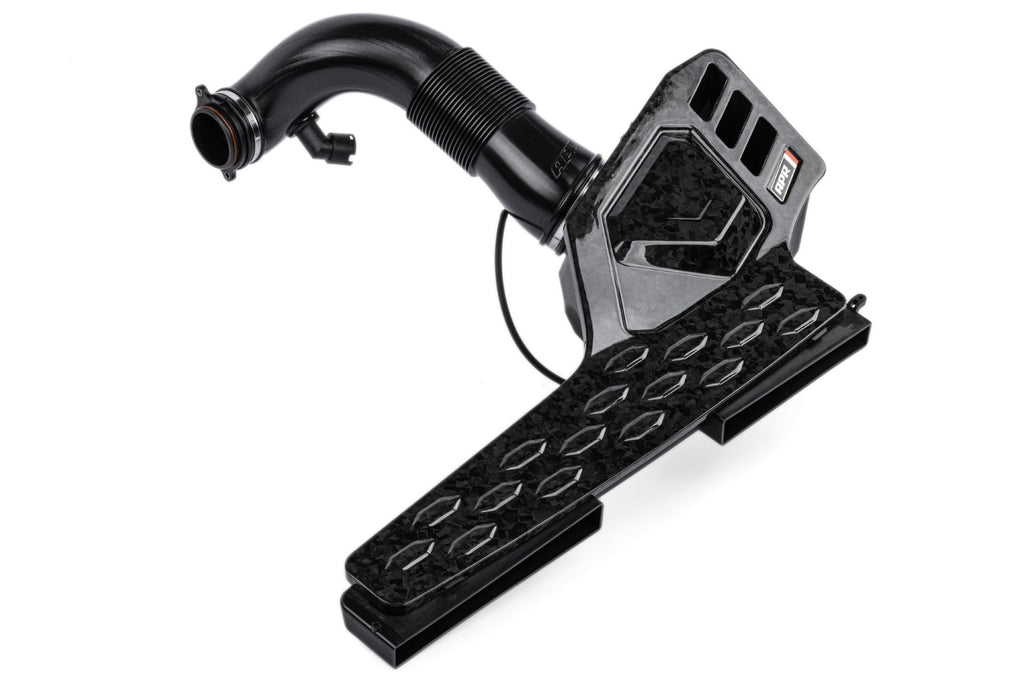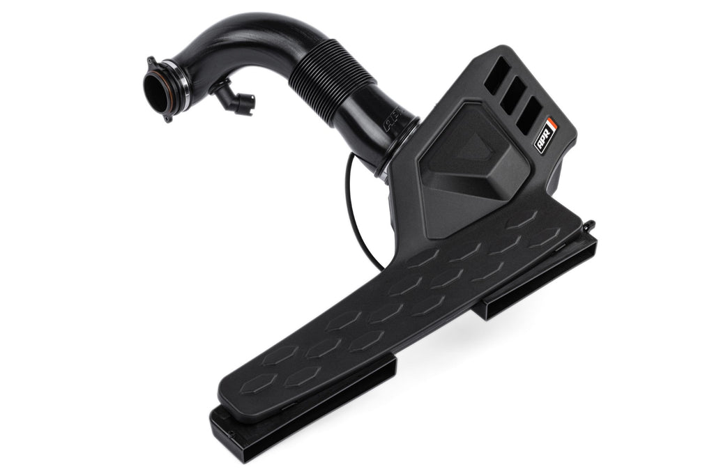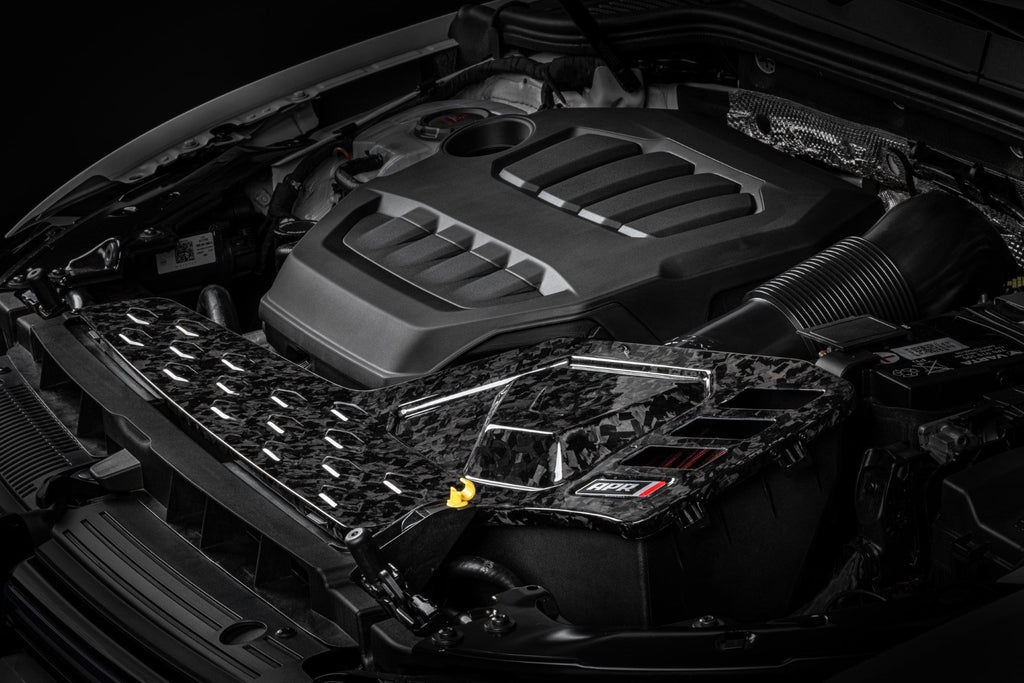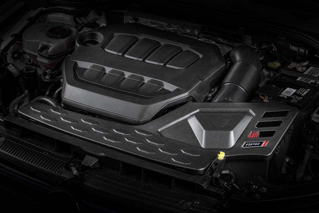 The APR Intake System is sold as an open system but can be configured as a closed system by adding this cover. This cover has an OEM style appearance and snaps into place without the need for any tools. Additional airflow paths allow the system to pull additional air on high power setups, while also allowing more turbocharger sound.