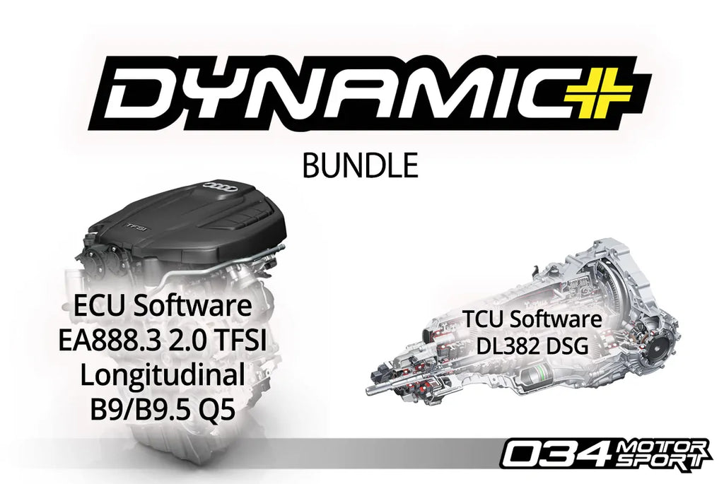 Included at an extra cost is the Stage 1 Dynamic+ Performance TCU Software for B9 Audi Q5 equipped with the DL382 G1 7-Speed DSG transmission to further enhance the shifting and acceleration of your DSG Equipped 2.0T! Flashed directly through your vehicle’s OBD-II port, 034Motorsport’s proprietary calibrations for the DL382 TCU safely and effectively optimize operation for Stage 1/2 & 1/2+ Dynamic+ Performance ECU Software. The result is a noticeable improvement in acceleration without sacrificing comfort or reliability
