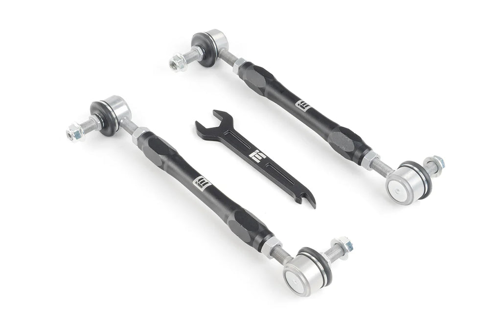 These adjustable end links correct the front sway bar geometry in your lowered VW or Audi. By eliminating unwanted preload, your sway bar works more effectively for improved handling, stability, and with a connected, responsive steering you'll feel.