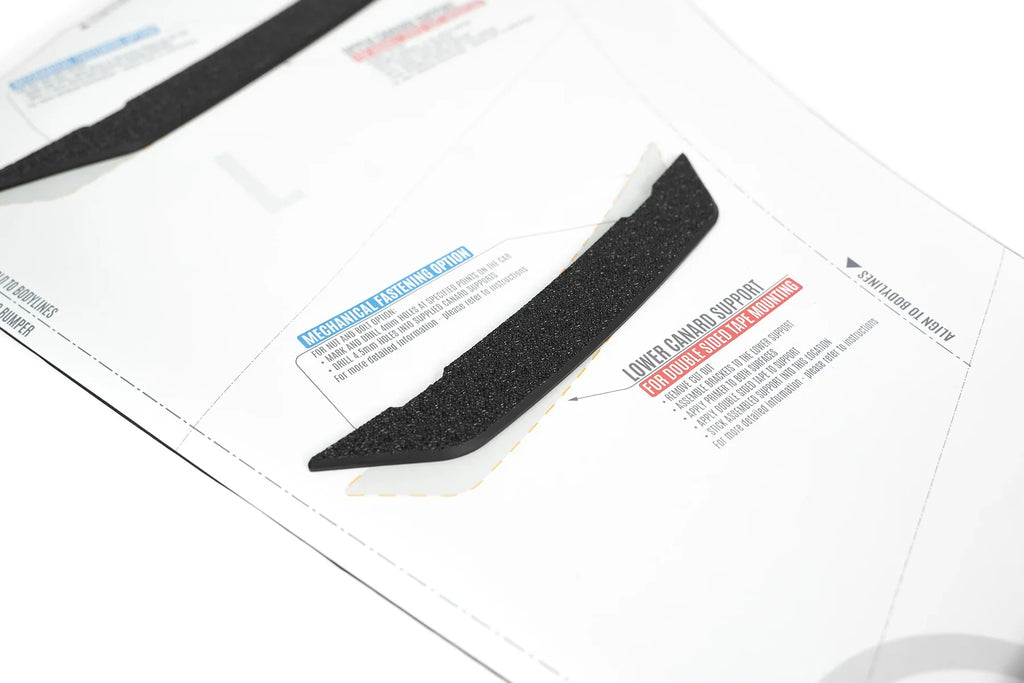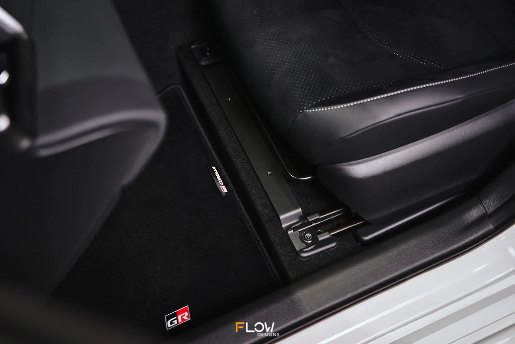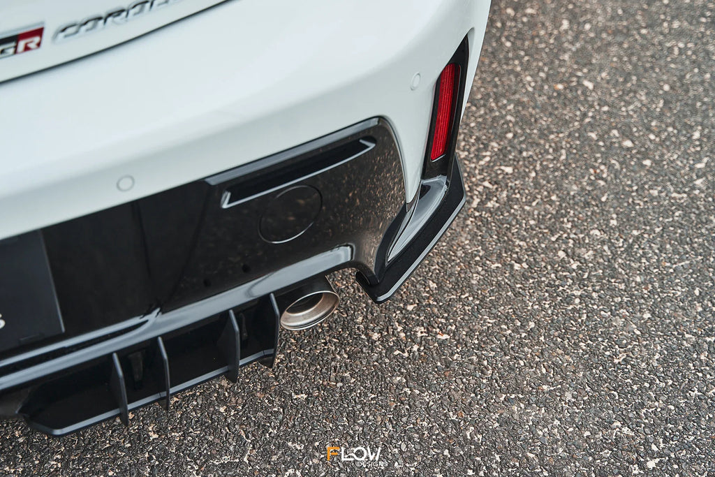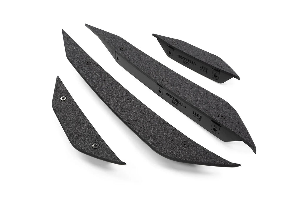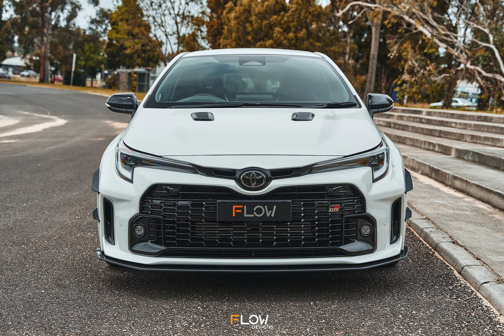 The new Flow Designs splitter set for the Corolla GR offers a gloss or textured finish and includes front/side splitters & rear spats/Flow-Lock rear diffuser. Pre-pressed in threaded brass inserts accept all our add-on accessories for the GR such as winglets and front splitter extensions.