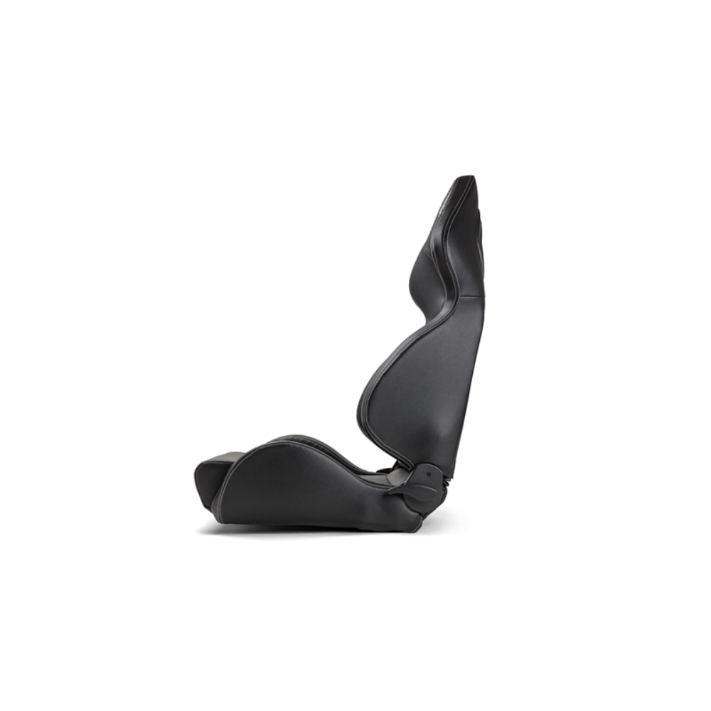 This black seat features white contrast stitching on the exterior and seat and back padding for extra comfort. The aggressive side and thigh bolsters hold and protect the driver. The Chrono Road seat has a full suspension bottom and generous sizing for added comfort. Available in 2 sizes, STANDARD and LARGE.