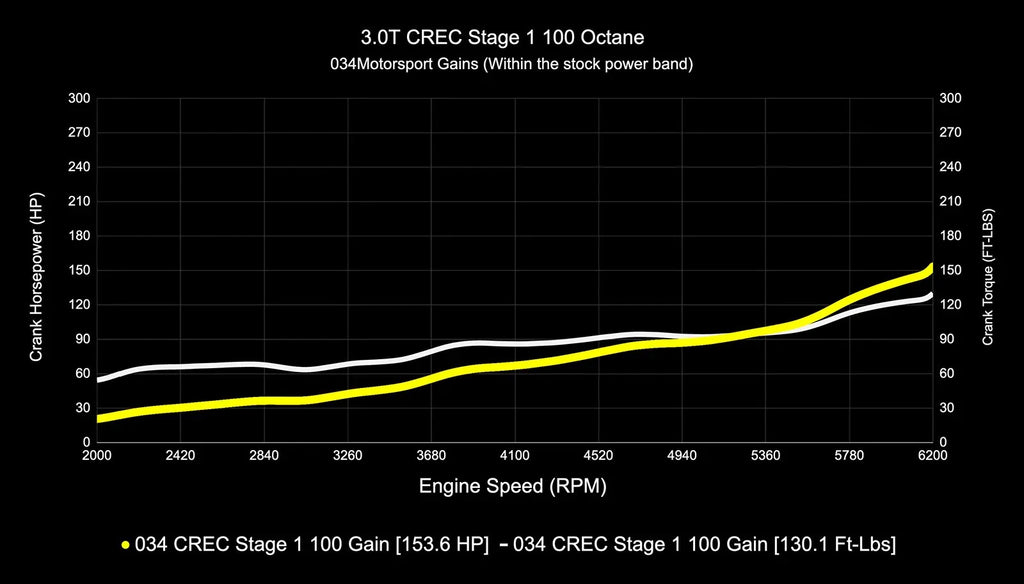 034Motorsport 3.0 TFSI CREC Performance Software is flashed via the factory OBD-II port, and does not require any physical modification of the factory ECU. Stage 1 is available in 91 Octane, 93 Octane, 100 Octane, and E85 Octane files. ALL FILES ARE US (MON+RON) RATING, ROW OCTANE RATINGS MAY DIFFER.