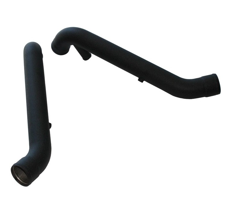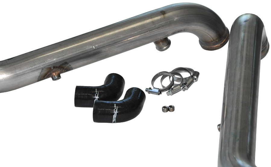Engineered utilizing CAD software to ensure perfect fitment and optimal flow. Manufactured from precision mandrel-bent 304 Stainless Steel to minimize heat transfer from the engine bay to the charge air. Constructed utilizing 2" diameter tubing with flared ends to mate up snugly with OEM or aftermarket intercooler outlet hoses and throttle body boots. Each bipipe features beaded ends to prevent hoses from blowing off under boost, and 1" nipples for diverter valves (stock is 3/4"). "Stealth" water-methanol injection bungs are welded underneath each of the bipipes to accommodate WMI kits.
