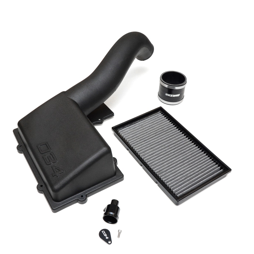 034Motorsport‚¬„¢s engineers thoroughly evaluated the factory airbox design to create a performance replacement that reduces pressure drop in the intake tract and allows for increased airflow. The result is the complete one-piece P34 Air Intake System, which offers 100% bolt-on installation without the need for any additional pieces.