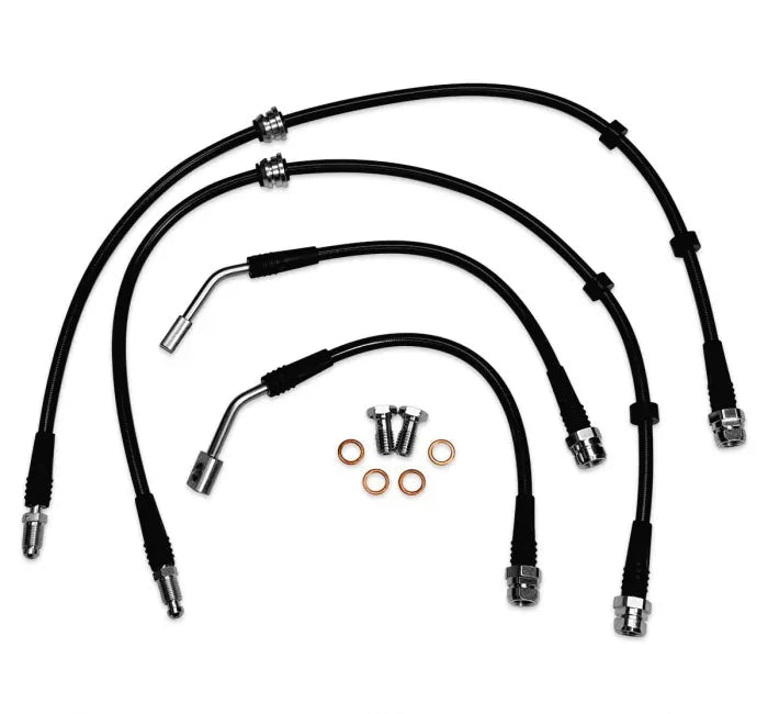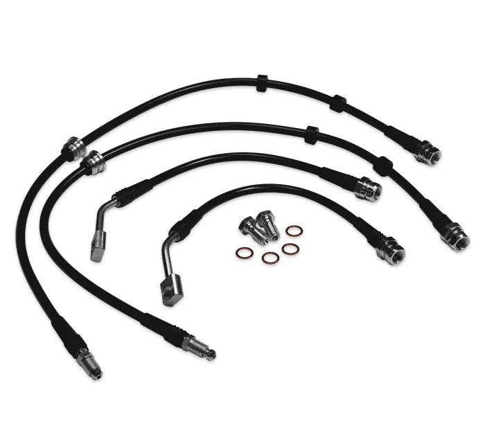This 034Motorsport Stainless Steel Braided Brake Line Kit features Teflon linings, stainless steel braided reinforcement, and a protective black PVC covering. All lines are Manufactured to Meet or Exceed DOT Test and Construction Standards.