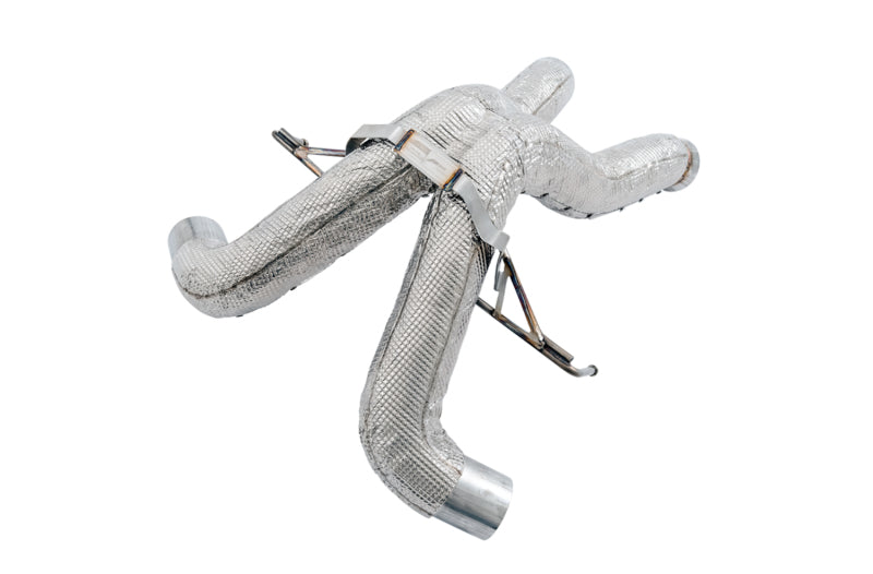 The AWE Performance Exhaust smooths the tone of the AWE Performance Catalysts, taking the soundtrack to a high-pitched, goosebump provoking exotic note. The Performance Exhaust is constructed from full 3" mandrel-bent T304 stainless steel and features an engineered opening between the banks, aiding to the signature tone. Surrounding the AWE Performance Exhaust is a mandatory OE quality custom-engineered quarter-inch thick, dual-layer waffled Inconel heat shielding with internal 3000 degreesF matting to prevent any heat damage and protect the 570's body paneling. This exhaust re-uses the factory tips. It's not easy to make a McLaren better....