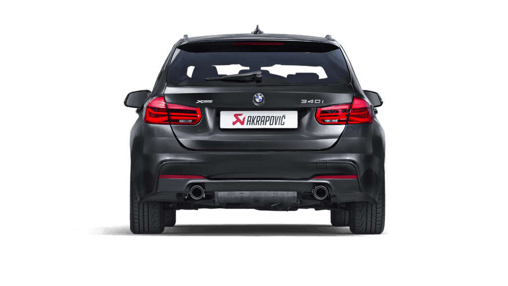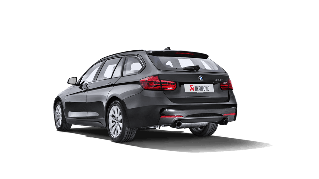 Evolution exhaust systems for the BMW 340i are the result of the perfect integration of expertise, the best technology, and the use of the finest materials. Made of austenitic stainless steel, these systems feature a  layout with two central mandatory link pipes replacing the single stock pipe. The system is finished with carbon fibre tailpipes. This sporty elegance makes this Bavarian machine stand out from the rest and offers the taste of a more powerful version, accentuated with the additional power gains and weight losses of the Evolution performance exhaust system. The dual-mode ECU-controlled valve exhaust from Akrapovič offers stock-level sound at normal cruising, and a joyful deep sporty note when driving the 340i more dynamically. The Evolution systems replace the stock exhaust from the catalytic converters back.
