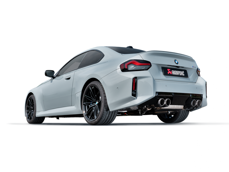 The system delivers power increases of 3.9 kW (5.3 hp) at 2,800 rpm and a torque gain of 13.5 Nm at 2,800 rpm when tested on the Akrapovič dyno against a BMW M2 with a standard stock exhaust. Remapping is not needed for this configuration, and it fits all vehicles (OPF and non-OPF), but the ECE certificate is valid only for cars equipped with an OPF filter.