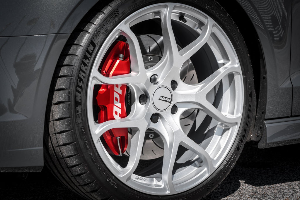 APR's Big Brake Kit Upgrades are ultra-durable, feature-packed solutions specifically tailored to each vehicle. The brakes provide outstanding stopping-power at an affordable price and are targeted towards a wide operating range, such as normal spirited street driving, track days, and HPDE events. All of the systems handily out-brake, out-last, and out-perform many systems on the market with ease. They obliterate massive factory brake systems, such as those found on the Audi RS3. Simply put, few can come close to matching the features and price point we offer with our systems. Whereas most systems on the market either make heavy sacrifices to either look fancy, cut weight, or cut costs, the APR system is designed to simply brake better, last longer, and stand the test of time.
