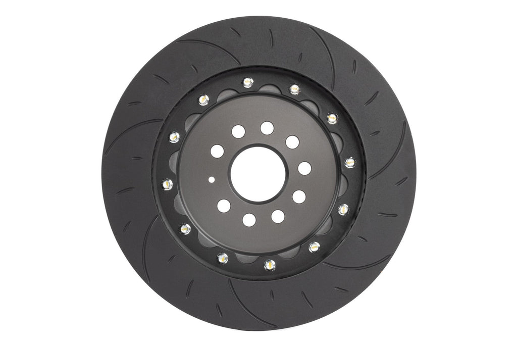 - 2-Piece 370x34mm semi-floating discs with 72 curved directional cooling vanes