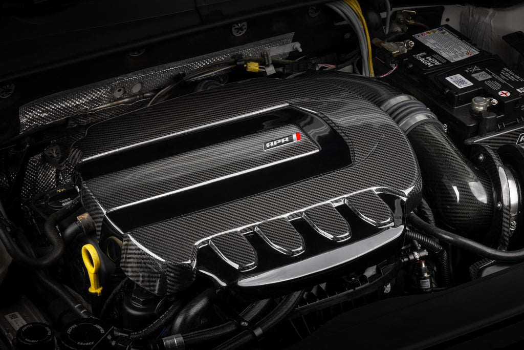 The APR Carbon Fiber Engine Cover is here for a wide range of 1.8T and 2.0T EA888.3/3B/4/4B engines. The cover is made from carbon fiber in a twill pattern with black accents with a gloss finish. The design is similar in spirit to the higher end full covers that cover both the engine and manifold as found on the Audi S3 and TTS models. It features the world famous APR logo and a design that's sure to turn heads.