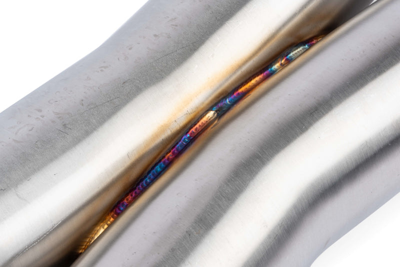 For vehicles with an 3" midpipes and an APR Catback Exhaust System, the APR X-Pipe is a must have. This upgrade creates a smooth transition between the two systems and integrates an x-pipe that reduces backpressure. This upgrade smooths out the exhaust note for a more refined sound profile while also increasing peak torque. Like the rest of the system, the x-pipe is constructed from T304 stainless steel, beautifully TIG welded, and includes all new APR slip clamps.