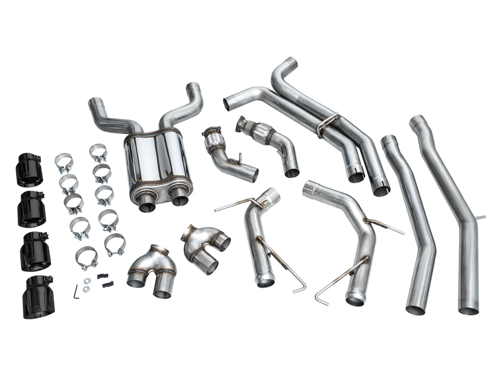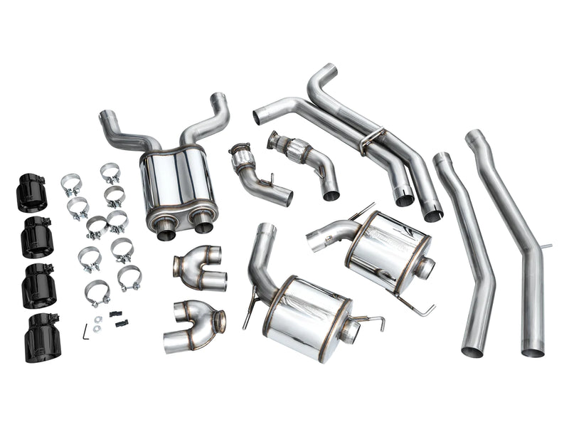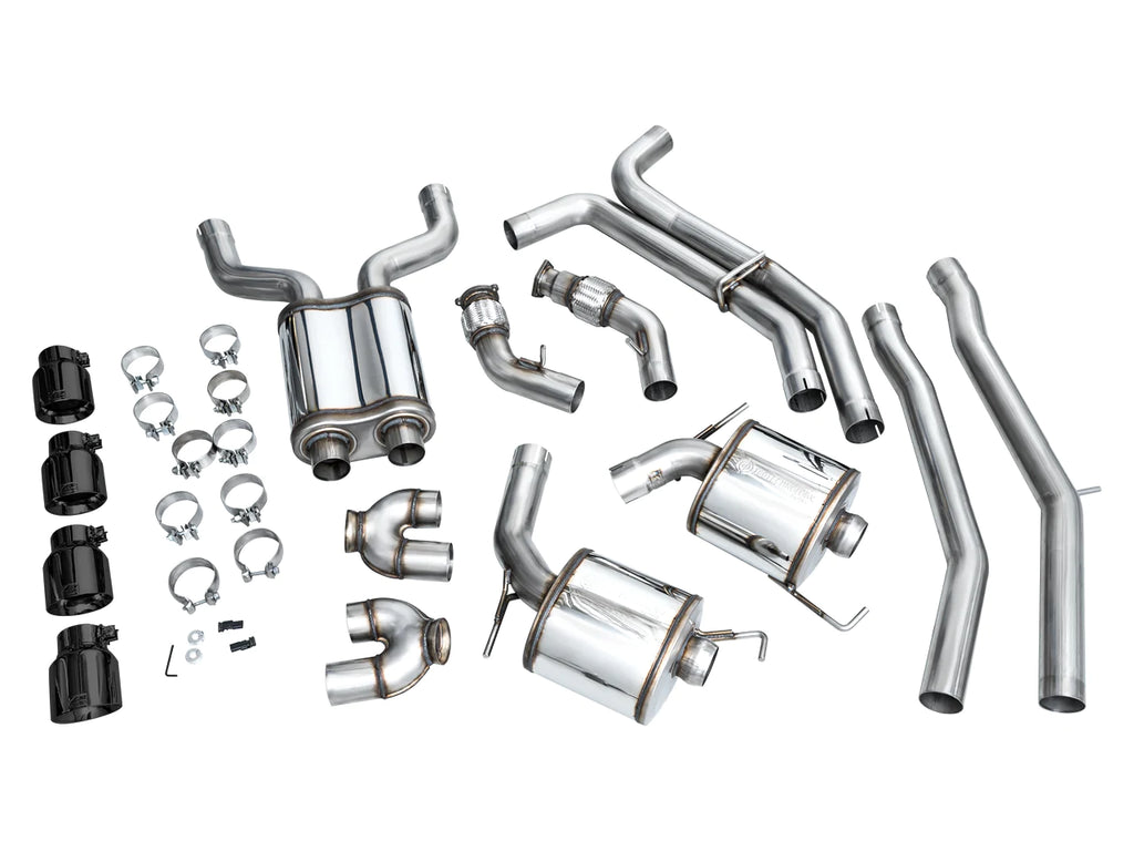 - Complete AWE Touring or Track Edition Exhaust, AWE valve simulators, four slash-cut tips in chosen finish, electronic valve simulators, and all required hardware for installation.