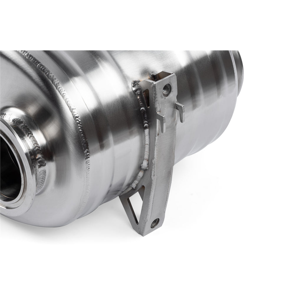 This optional muffler can be used with our 718 982 2.0T / 2.5T exhaust system to quiet the exhaust note. Simply swap out our catback's straightpipe and put this in its place. V-bands and precision clamps make removal and mounting a snap. The system is created from T304 stainless steel with a brushed finish and TIG welding throughout. The muffler is a straight through sound absorption design.