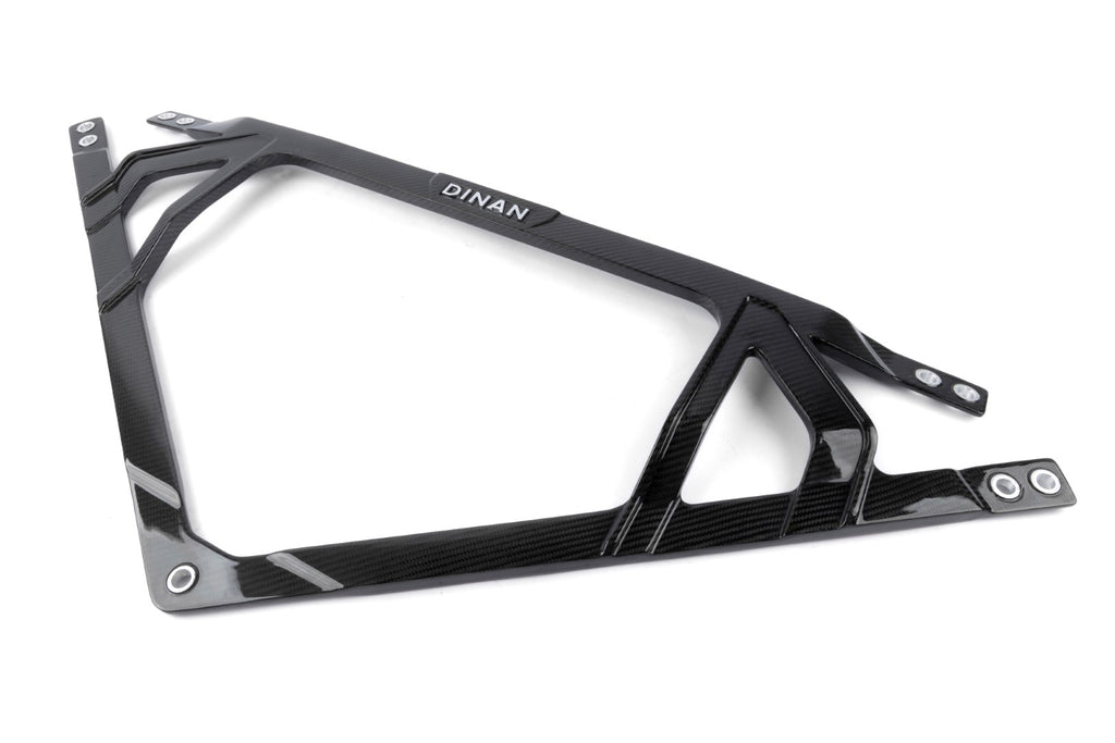 The Dinan G8x Strut Tower Brace provide additional rigidity and sharper handling to the chassis by reducing flex under hard cornering conditions. With more control, spirited driving becomes easier and infinitely more enjoyable. The lightweight brace is designed with maximum function in mind and includes linking structural elements that completely change the OEM 2-piece strut bar set into one blended system that offers additional strengthening against flex. Not one to take a back seat to functionality, aesthetics are also elevated beyond simple steel bars into striking carbon fiber (matte or gloss) with accents that tie in effortlessly into the highly geometric and angular factory engine bay for an OEM+ feel.