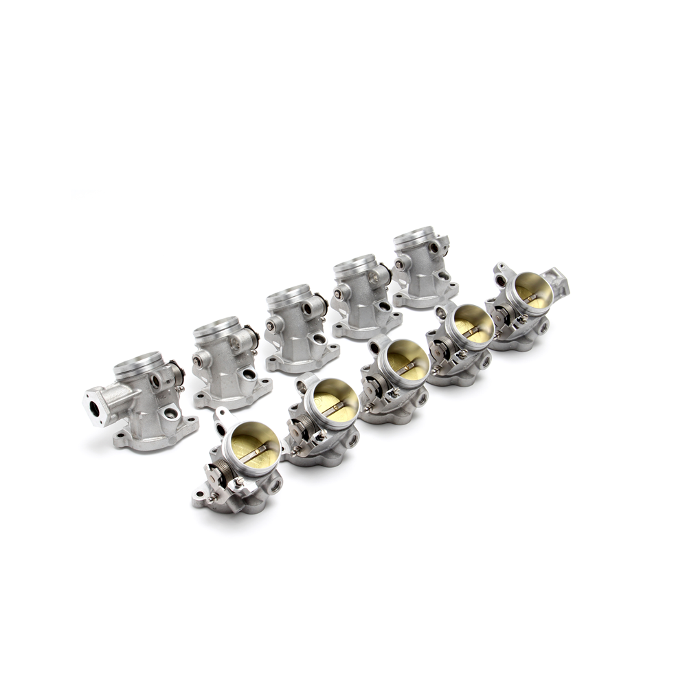 The BMW S85 engine is built with ten throttles bodies, one for each cylinder.  Dinan takes each one of these stock throttle bodies and carefully bores them to a larger internal diameter, enabling each cylinder to breathe more efficiently.