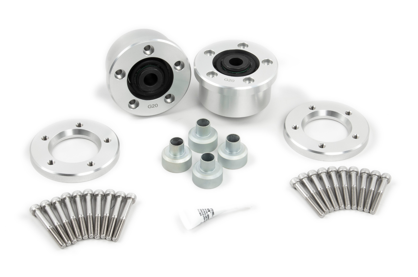 The Dinan Tension Strut Ball Joint Kit provides responsiveness you can feel by replacing the rubber bushings in the thrust arms with precision ball joints and machined aluminum housings. Improves responsiveness by eliminating the deflection inherent in the stock rubber bushings while also reducing brake shimmy. The quietest bearings on the market are virtually noise-free so you can live with them every day. These are the only bearings on the market that are sealed using a rubber boot to keep out dirt and road grime stopping them from wearing out prematurely.