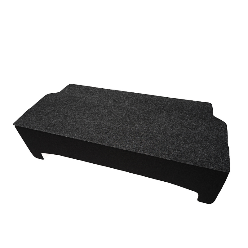 We carpeted this delete with our heavy duty black trunk liner to continue the flow of the existing carpet and to hold up to whatever you decide to throw at it!