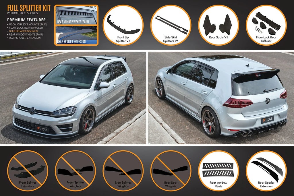 - WITH all accessories package: MK7 Golf R side winglets (Pair)