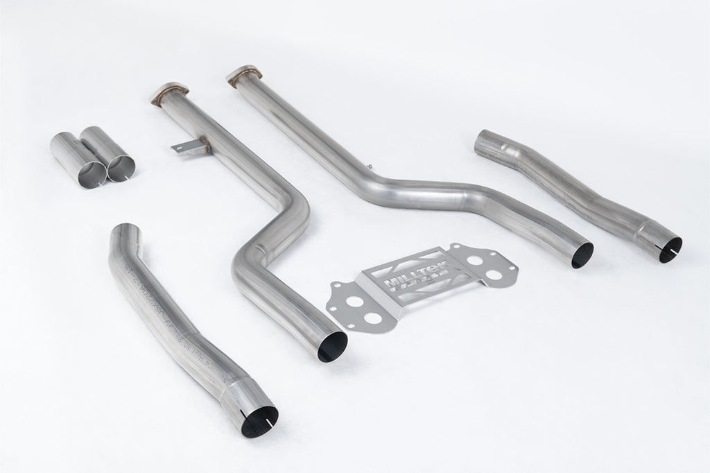 Milltek Sport exhausts are produced in high quality type 304 aircraft grade stainless steel. This material is anti-magnetic (other manufacturers stainless steel may not be) and is less susceptible to discolouration. This quality of stainless steel is used on all pipework and the total construction of the silencer. Mandrel bending ensures full flow bends for better gas flow and Milltek systems are increased in bore to ensure ultimate performance without the loss of mid range torque.