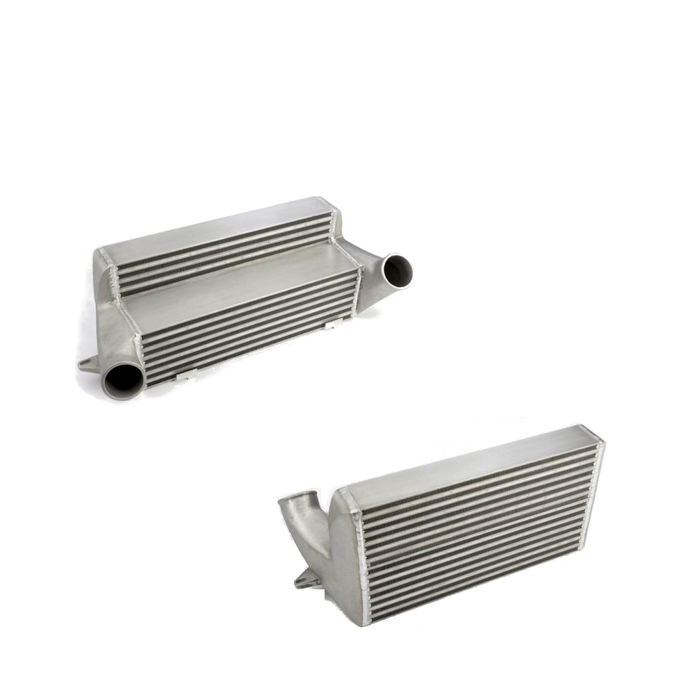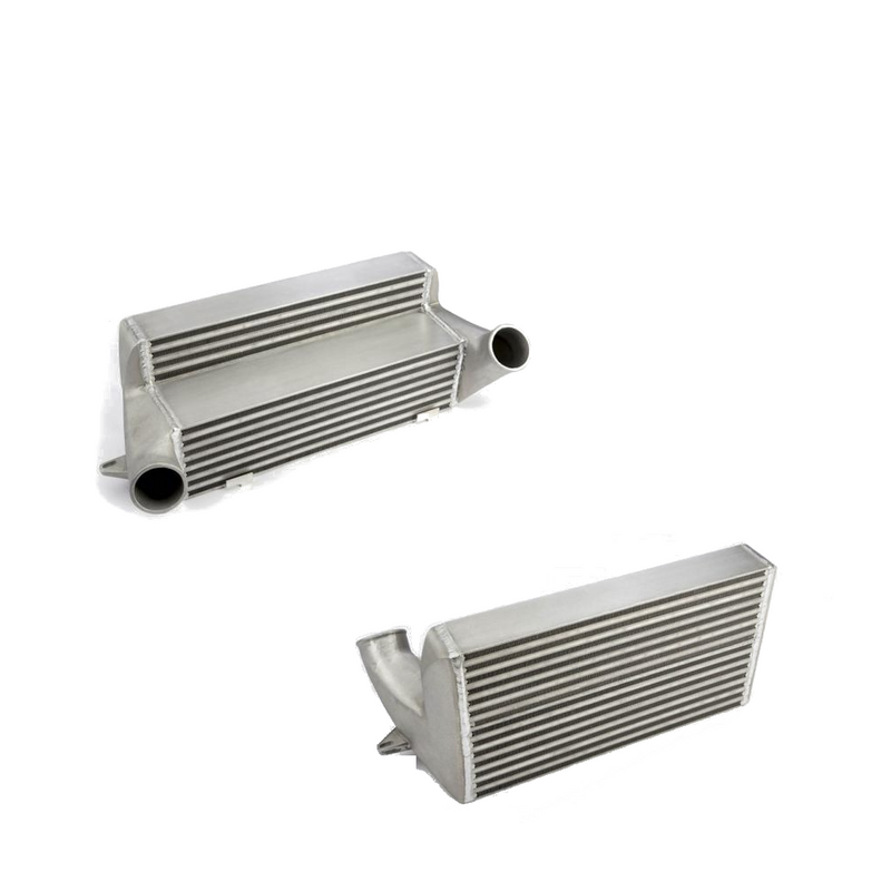 The most important component of any intercooler is the core.  The core cools the charged air from the turbo before it enters the engine and the OEM BMW tube and fin intercooler is designed to support low boost levels and air flow.  Once boost levels and air flow are increased, the OEM unit is easily overwhelmed and can not keep up with the cooling demands of a tune running more than OEM boost levels.  This results in heatsoak which will result in a power loss and a higher potential for pre-detonation in the upper RPM range.  We remedy this problem with our custom bar and plate core designs which utilizes a staggered and offset high density internal and external fin pack.  Our cores have been carefully tuned to provide the the best intake temperature reduction while maintaining minimal pressure drop.  Our bar & plate core is also much more durable than the OEM tube and fin core, with a better ability to withstand rocks and other debris.